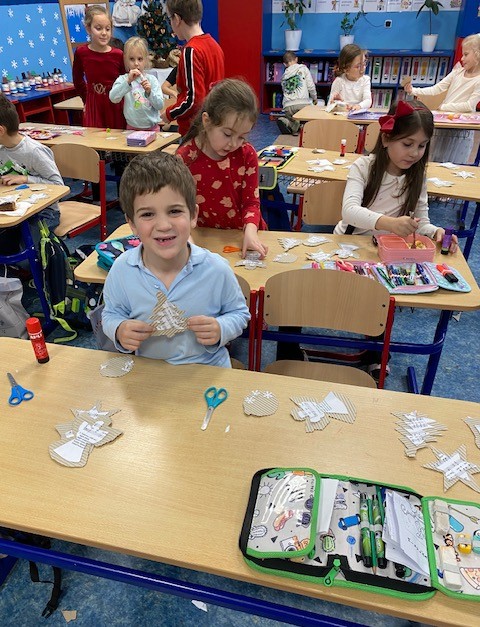 Prípravy na najkrajšie sviatky sú v plnom prúde nie len v rodinách, ale aj u nás v ŠKD. Predvianočnú atmosféru v ŠKD dotvárajú krásne práce detí, kde sa pani vychovávateľky snažia vymyslieť pre deti niečo nové a zaujímavé. Tento rok si deti vyrábali vianočné ozdoby z papiera a vianočných škriatkov či anjelov. Šikovné ručičky naších detí sa nezľakli ani ručných prác v podobe hačkovania. Začiatky sú vždy ťažké, ale radosť naučiť sa niečo nové, stojí za to. Deti to zvládli ma jednotku.